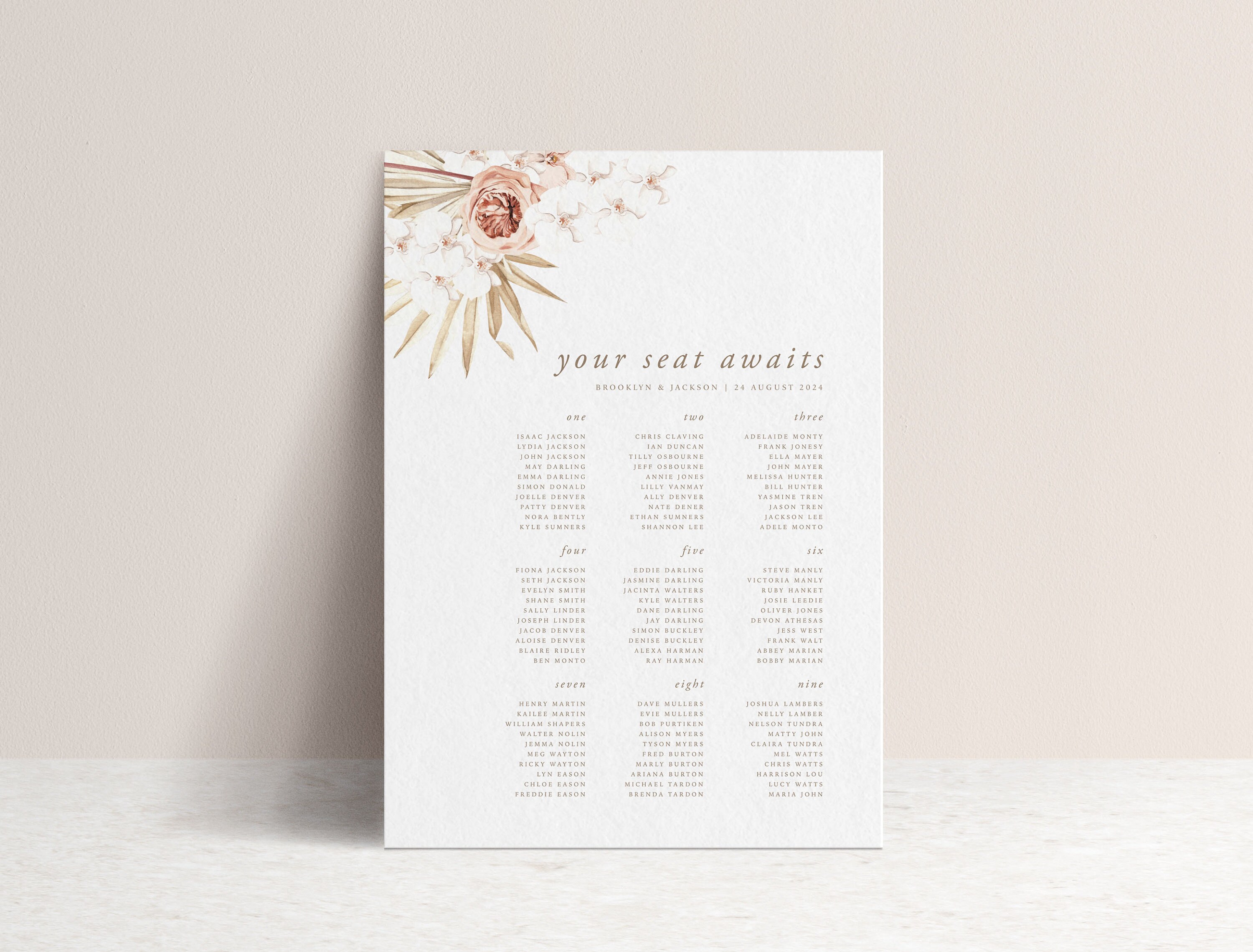 Boho Flowers Wedding Seating Plan Seating Chart Template for