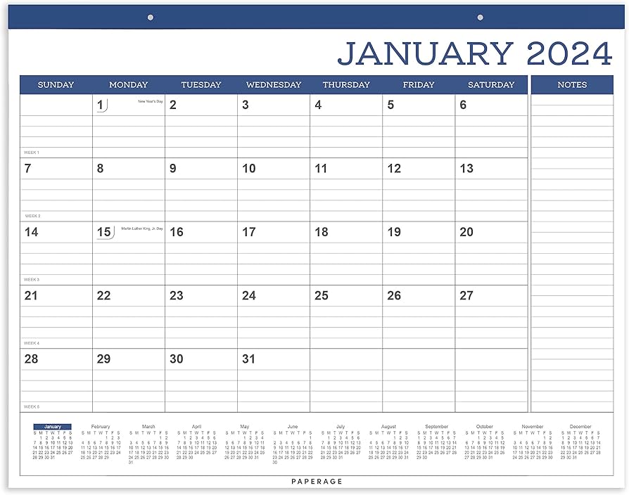 Amazon.com: PAPERAGE Calendar 2024 12 Month (Navy), Minimalist
