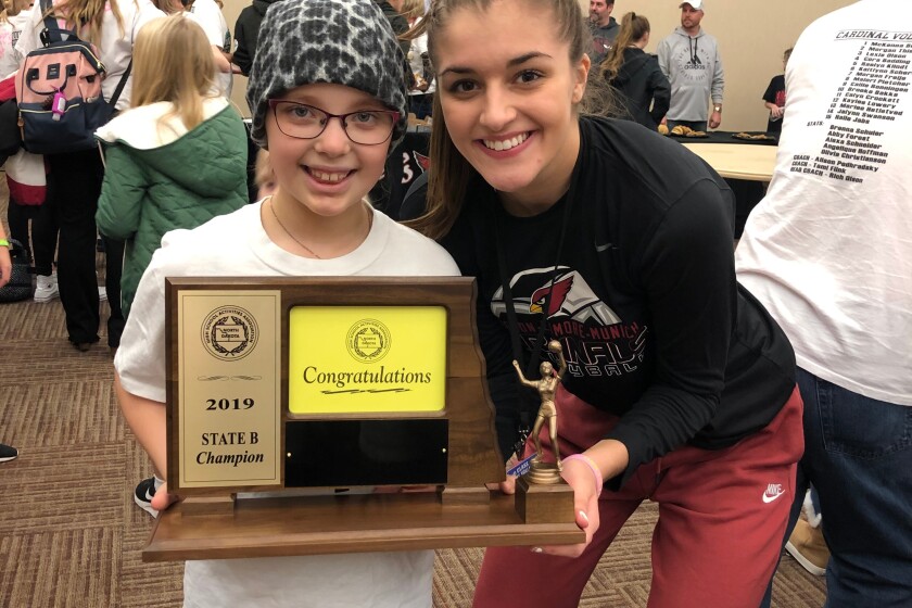 State volleyball champ Langdon E M team goes to bat for 8 year old